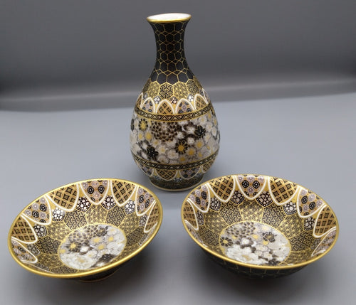 人の手で描かれたとは思えない超絶的技巧。華麗で緻密な色絵が特長の「京薩摩」の流れを汲む新川砂山の作品は、特に上品な黒をベースにした繊細な金彩絵付けが特長です。金はすべて本金を使用しており、その輝きが褪せることはありません。