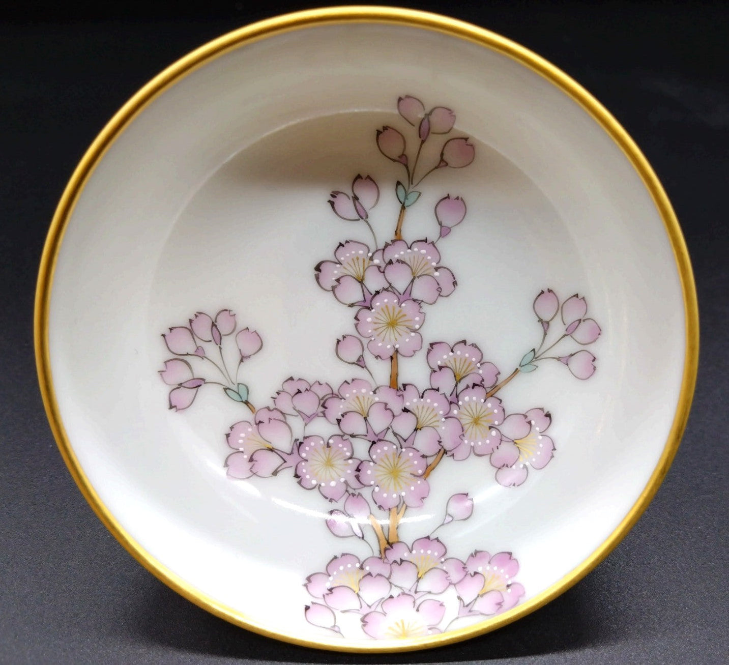淡くやさしい色調で描かれた桜の花々に、繊細な金彩を重ねることで、華やかさの中に静けさを宿した佇まいに仕上げられています。余白を生かした構図は、京焼ならではの美意識を感じさせ、眺めるほどに奥行きを増す一客です。