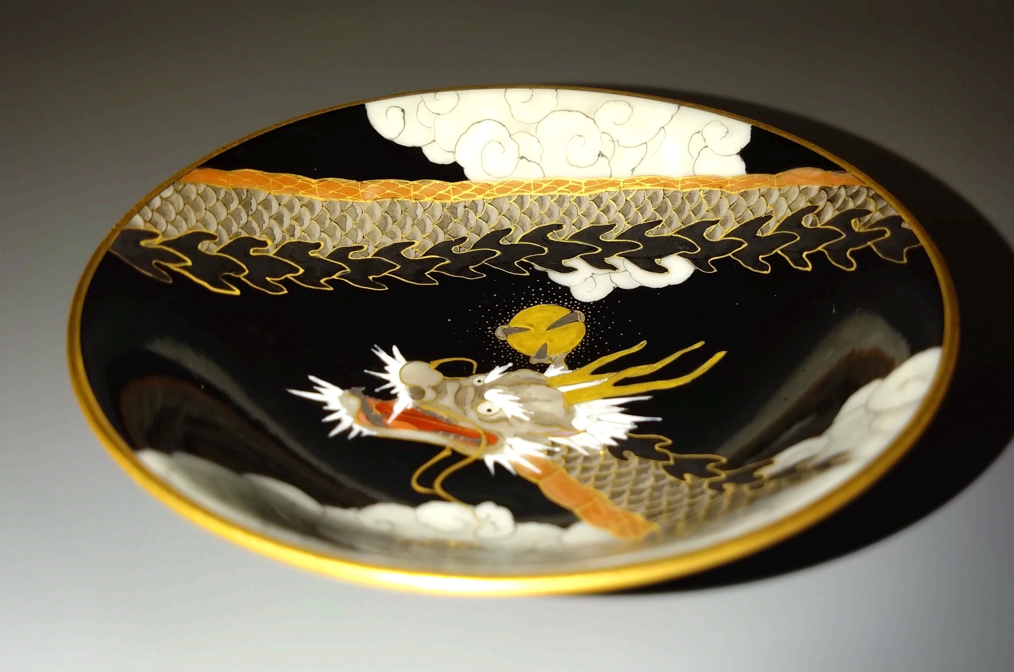 龍の細かな鱗や高台部分にも施される細密な絵付は新川氏の真骨頂と言えるでしょう。