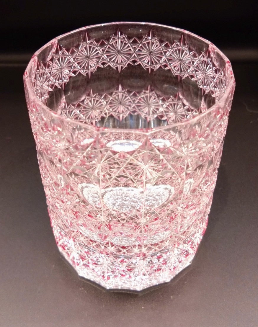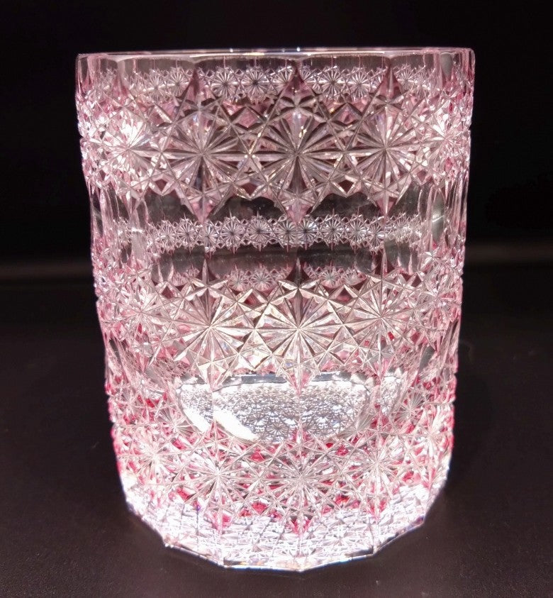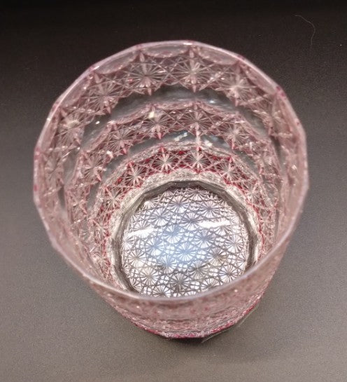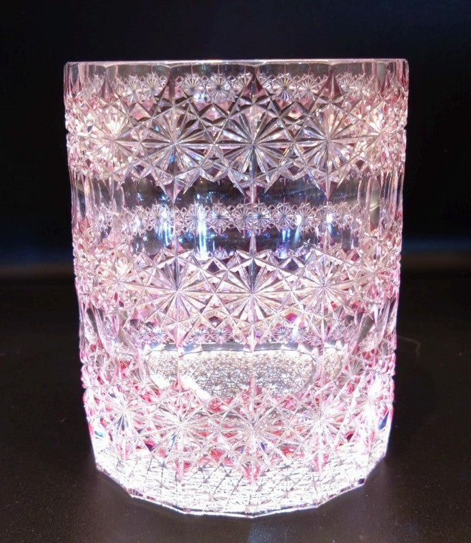 江戸切子 青山弥生 ロックグラス ソーダ ピンク