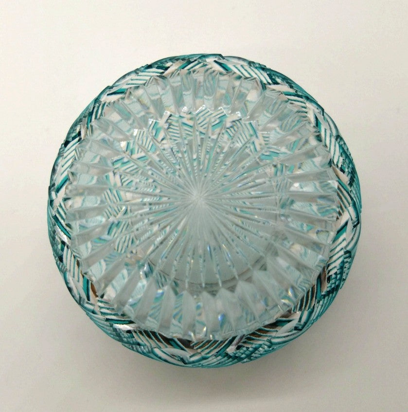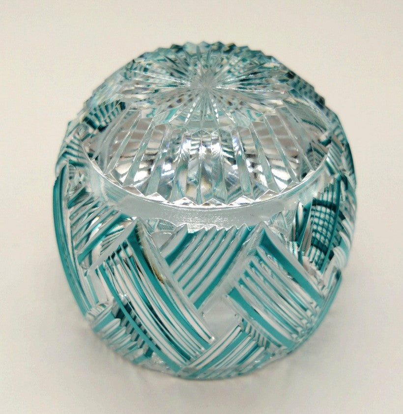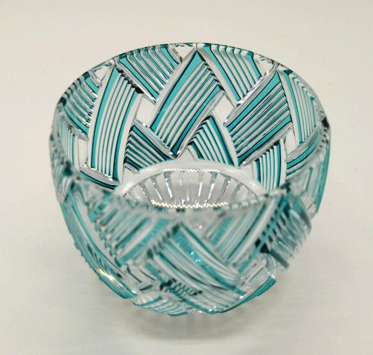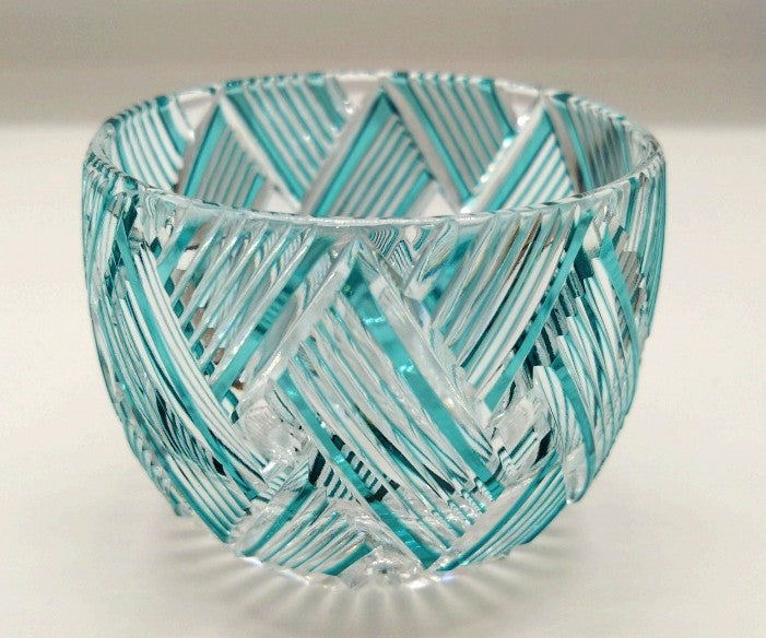 清々しいグリーン色のガラスは、まるで新緑の若葉のような爽やかな色合い。透明感のある緑の色彩が、繊細なカットの美しさを一層引き立てます。