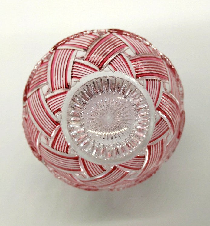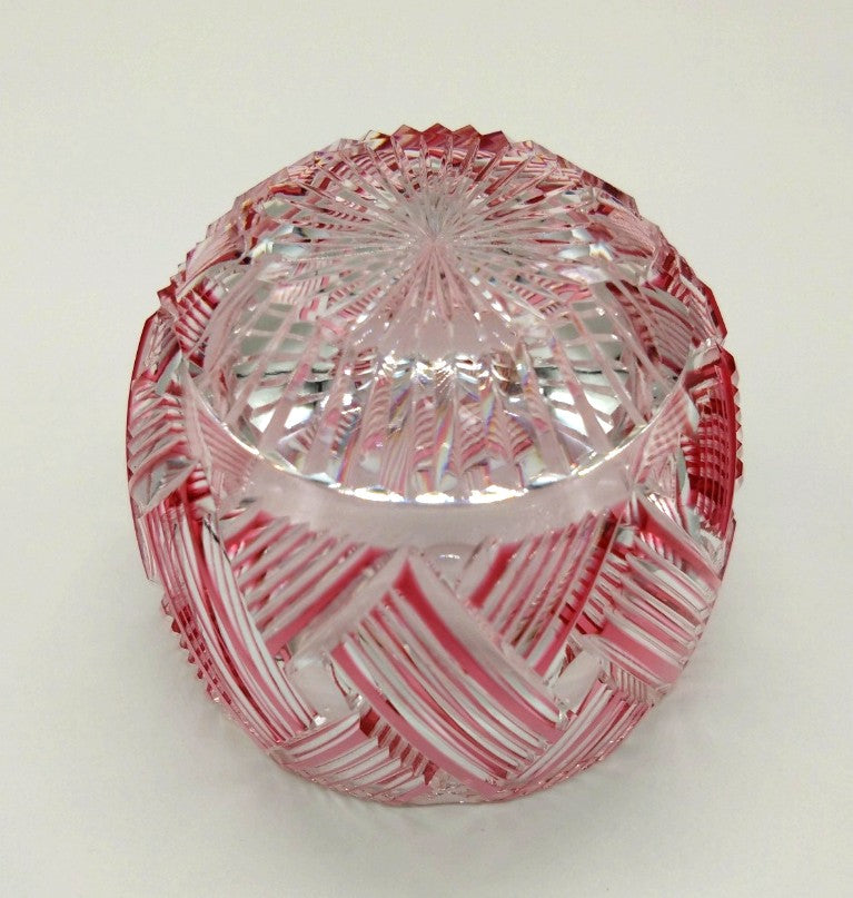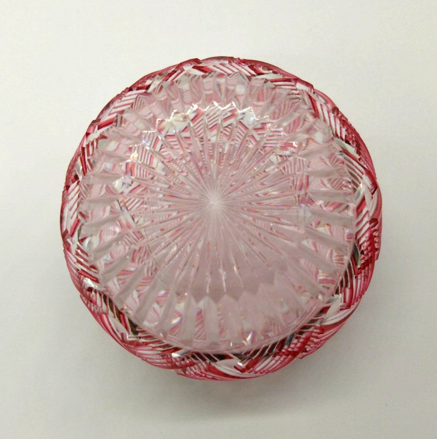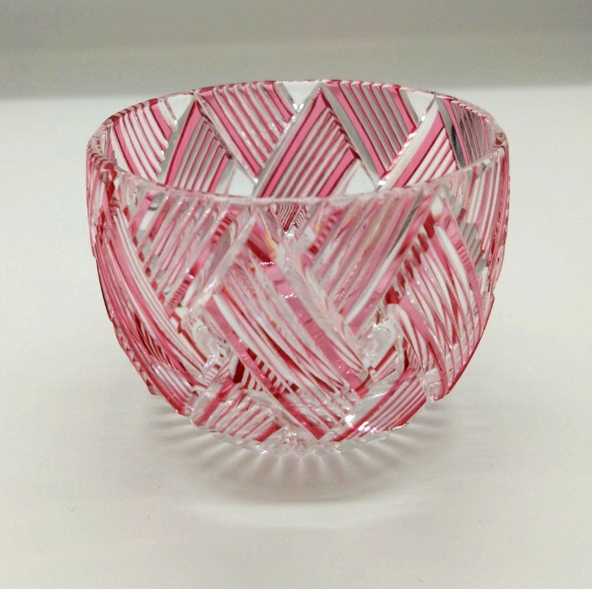 淡いピンク色のガラスは、まるで春の花びらのような優しい色合い。透明感のあるピンクの色彩が、繊細なカットの美しさを一層引き立てます。