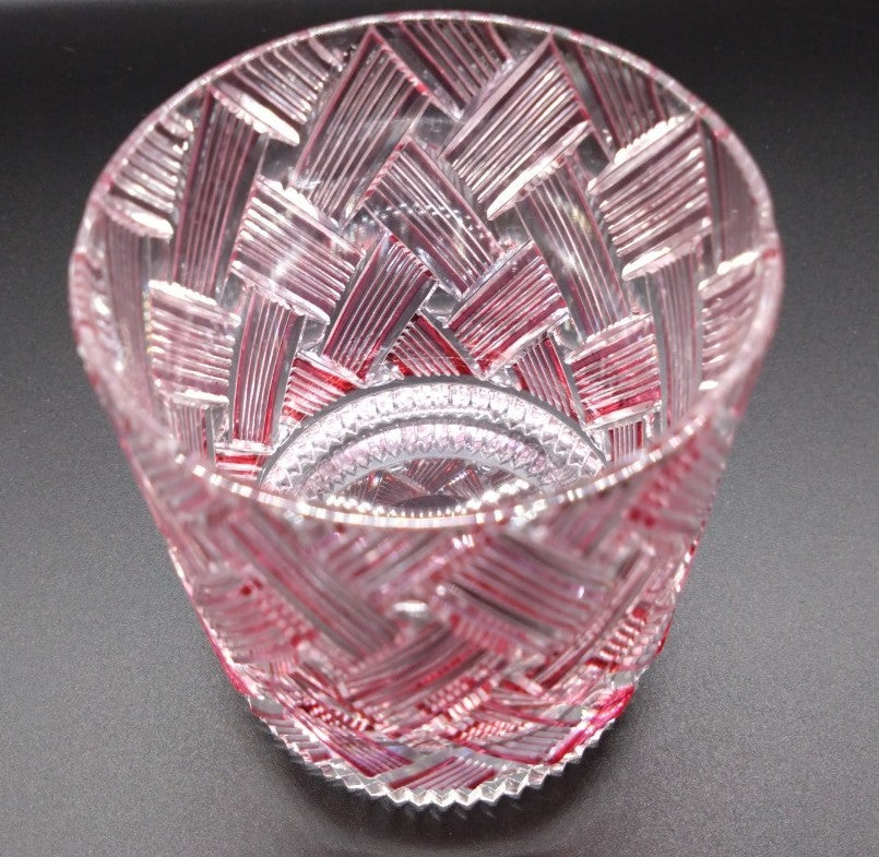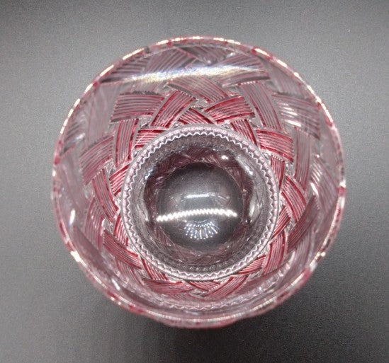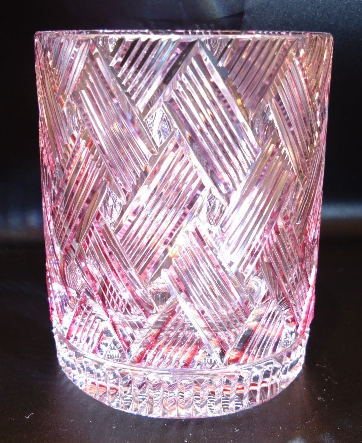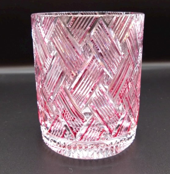 江戸切子 青山弥生 ロックグラス 織織 ピンク